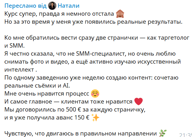 Навчила створювати АІ-контент 1000+ людей.